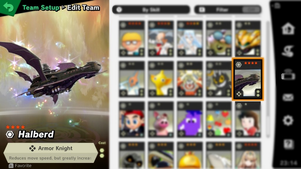 Weapon Attack ↑ – I recommend this for nearly every Hero build, since his sword is his most reliable way to attack. You’ll never run out of sword. Luigi (Mario Tennis Aces), Robobot Armor, Karel, Harriet, Hard Man, and Goligan.Magic Attack ↑ is also a super important Skill for Hero, but I would say it doesn’t have to be on every set like Weapon Attack ↑ should be. You’re just not always going to have MP, the way you’re always going to have a sword. But Hero has some high damage spells, so buffing them further can very much put in work for you. Wanda, Soren, Shaft, and Ivan.Shield Damage ↑, as mentioned above, will (theoretically) open Hero’s opponents up for more shield break punishes, which can lead to cheeky critical hit forward smash kills. Wolfen, Mr. Saturn, and Amy.Air Defense ↑ will help prevent off-stage gimps, as well as let your Hero soak up hits a little better in general combat above the stage. Especially important when recovering costs Hero his easily spent MP. Baby Peach, Coo, Parachute, Medusa Head, Twintelle, and Corviknight.Great Autoheal is normally banned for ‘engendering passivity’ (which makes for really boring matches at times), but if you decide you don’t care, the consistent healing can do wonders for Hero in combination with his versatile toolkit. Only the Legend Celebi will give you this one.Trade-Off Ability ↑ will give anyone equipped an extra 18% overall to Attack, 20% overall to Defense, and 20% additional speed while moving horizontally on the ground or in the air. It’s a very worthwhile trade, especially on heavier characters that don’t mind starting at 30% damage. Majora’s Mask, Garon, and Kazuhira Miller.Armor Knight, what I consider to be the strongest Skill in the game, gives you a 15% bonus to your overall Attack and an 80% bonus to your overall Defense, in exchange for about a 40% drop to your horizontal speed – amended well enough by Trade-Off Ability ↑, which just gives you further stacked multipliers. Trade-Off Speed ↑ will totally repair your speed, but you don’t get those tasty Attack and Defense buffs. Only Halberd will give this to you.