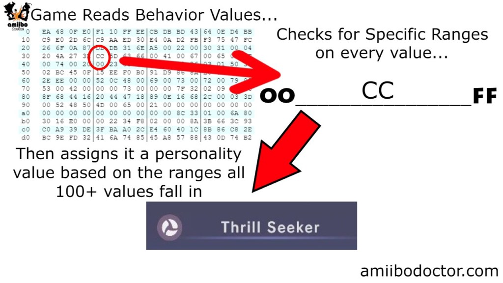 Here’s the problem. While personalities are a fun addition to amiibo and can help with theming, amiibo roleplays and more creative amiibo endeavours, they’re completely irrelevant to anything that actually impacts your amiibo. This infographic explains how amiibo personalities are “determined”: