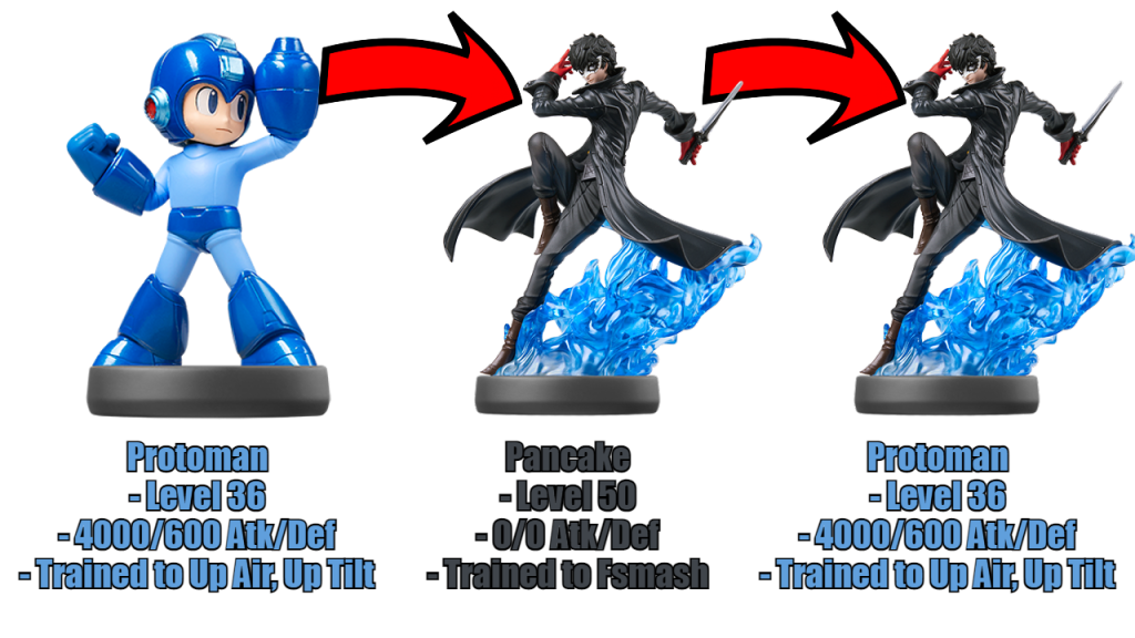But I saw that Protoman-Sephiroth used his movement significantly better than the previous Sephiroths, so I sprinkled in some Forward Tilt and Forward Smash, two hallmarks of Sephiroth, and the end result was significantly better than the original Sephiroth amiibo or the Proto-man Sephiroth He started taking games off of amiibo of all tiers, and even entire sets with a little more rejiggering. I wouldn’t have been able to replicate Protoman-Mega Man’s movement behavior on my own, but now I can thanks to the brain transplant.