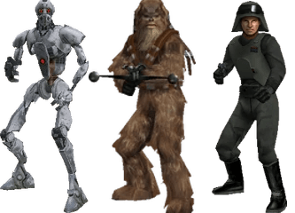 The Bothan Spy is the only stealth-based class in the game, with very little HP and no real stealth abilities. It’s technically armed with a cloak option (compare it to the Spy from Team Fortress 2), but that cloak option doesn’t render it completely invisible. Experienced players can spot a Bothan’s visibility distortion quite easily, and will cackle with joy as they shoot the Bothan who thought he was clever.