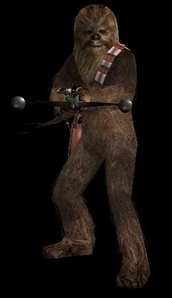 Bowcaster is Chewbacca’s sniper rifle/shotgun. Unlike the actual sniper rifle used by the infantry classes, Chewbacca’s rifle is a projectile weapon. This means that the bullet has travel time and may miss as a result. Despite this, Chewbacca is still useful as a sniper when the player is familiar with the wonkiness of head hitboxes in BFII and can work around them. Chewie can sometimes take one-shot kills with his sniper rifle when it’s fully charged and lands a headshot, so the Chewie player should keep an eye out for turned backs, players who aren’t moving and flying Fetts.