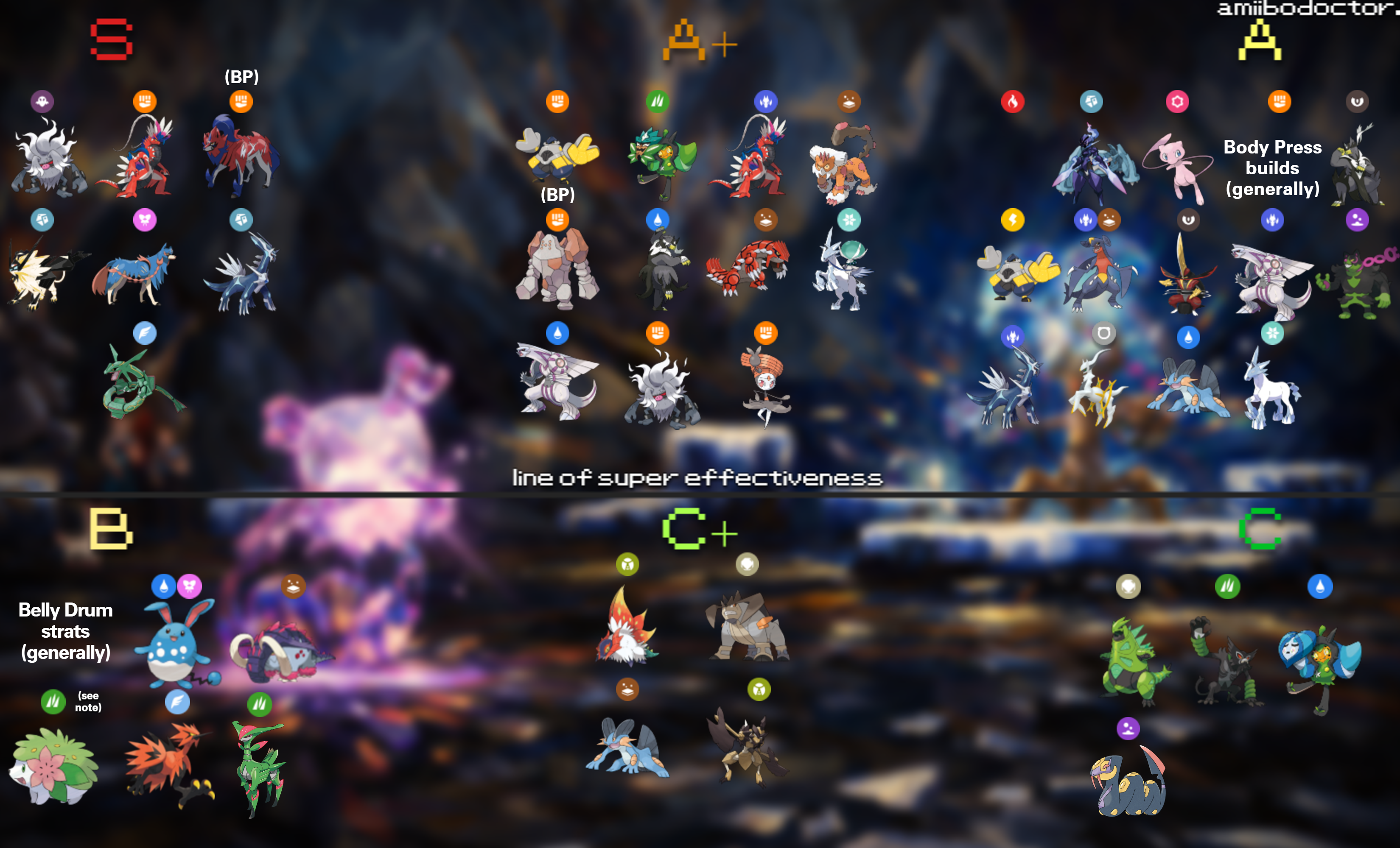 I’ve taken it upon myself, having stopped counting the number of raids I won after 5,000 6-star Tera raids, the overwhelming majority of them having been offline and without assistance, to produce a tier list of the raid builds that I use on a regular basis, while isolating many of the trope builds like Body Press and Stored Power to their own placements. There’ll be significant overlap with the existing list of recommended Tera Raid builds, but you’ll notice that some builds on that list simply aren’t listed on the tier lists I’m about to present because that page exists more to teach you about raid strategies and mechanics outside the 6-star exclusive environment. Frankly I need to rework it from the ground up anyway.