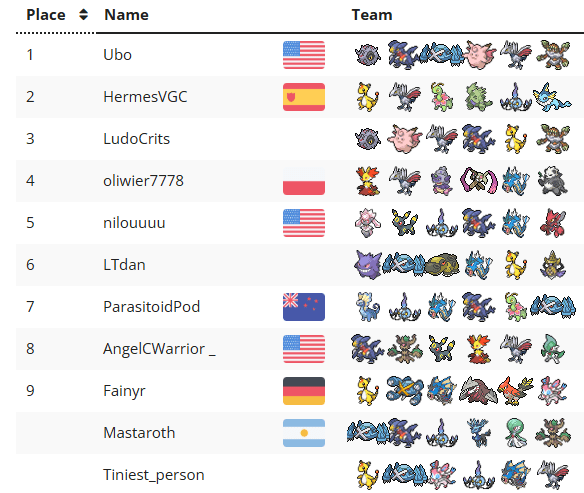 Alternatively, they have to pack a Fire type, and you’ll notice that everyone has one of either type, with basically no off-meta picks (don’t look at the Talonflame in the 9th slot, I don’t understand that moveset one bit). This reads to me like basically everyone preparing for Skarmory, and in many cases packing their own Skarmory as well. I think the meta is settled in this regard – bring Skarmory, and bring Skarmory counters for his Skarmory.