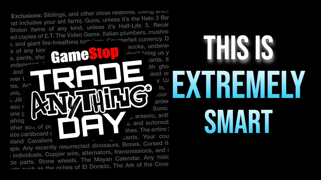 For the contemporary reading this: you probably missed it besides one or two funny memes, but GameStop announced the other day that, just in time for Christmas, they’re having a Trade Anything Day where you can bring in random crap and they’ll give you in-store credit for it. The jokes about this have been pretty funny, with people suggesting that they’ll bring in stuff like bricks, children, and so on, and I anticipate that December 6th, 2025 (the actual day) will have an interesting footnote in internet meme history. Jokes aside though, this is actually a pretty freaking smart business move. There’s two reasons.