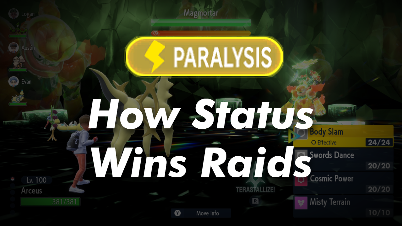 In Tera Raids, inflicting your opponent with the right status move can sometimes clinch you a victory you may not have otherwise had. You won’t always have direct control over what status the opponent will have – sometimes your NPC partners will inflict a status for you, or you’ll be running a build like Okidogi that inherently inflicts status on its own – but if you can help it, you should consider attaching a status to your move pool… unless it’s poison.