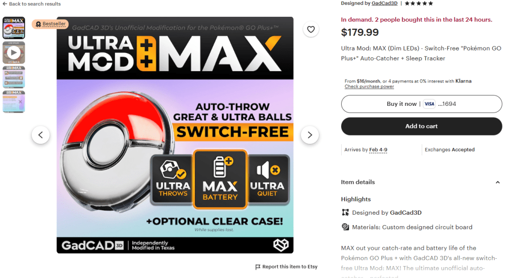 The second tier is the sweet, sweet tier that frankly changes the entire way you play Pokemon Go, the Go Plus Plus tier. Niantic made it so that if you bought the Go Plus Plus you’d be able to use Great Balls and Ultra Balls by pressing the button, and it would natively autocatch Pokemon with regular Poke Balls. Naturally, hardware modders made it so that the Go Plus Plus button is basically always being held down, so you effectively have an autocatcher that can use Great Balls and Ultra Balls as well. To my knowledge, the only way to get that second tier of autocatcher is by modifying the hardware of a Go Plus Plus. The cost of the hardware mod is typically a solid $80, but the cost of the hardware itself is actually much higher. And yes, it’s basically all from a single Etsy store (the one I linked you earlier) so if that guy quits… we’re screwed.